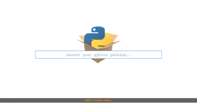 A search engine for Python modules and packages ( all ∼45K available in pypi.python.org ), which also provides context based code search.